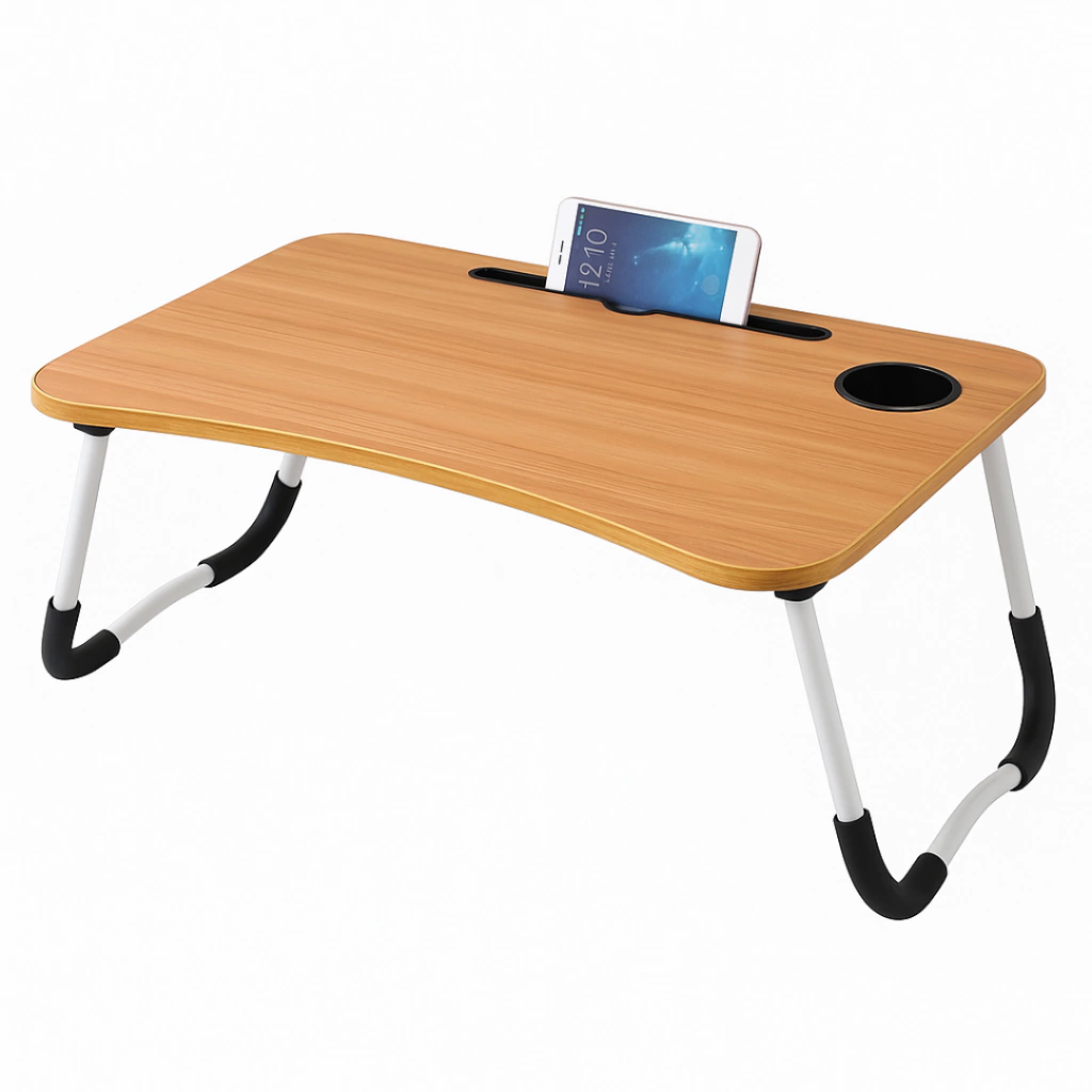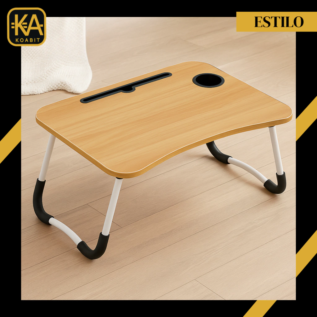 Mejora tus momentos de relajación con la bandeja de cama portavaso plegable de KOABIT. Con unas dimensiones de 60 cm de largo y 40 cm de ancho, esta bandeja ofrece el espacio perfecto para disfrutar de tus comidas, bebidas o el trabajo en la comodidad de tu cama. Fabricada en madera, combina durabilidad y estilo, aportando un toque cálido a tu entorno.