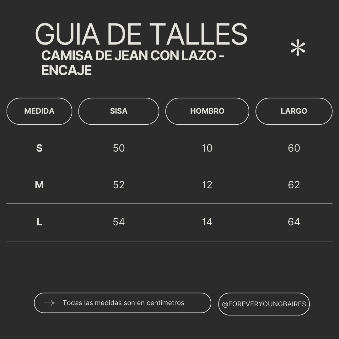 ¡Bienvenido a Forever Young! Te presentamos nuestra Camisa de Jean con Lazo y Encaje, una prenda que fusiona estilo urbano y detalles femeninos.