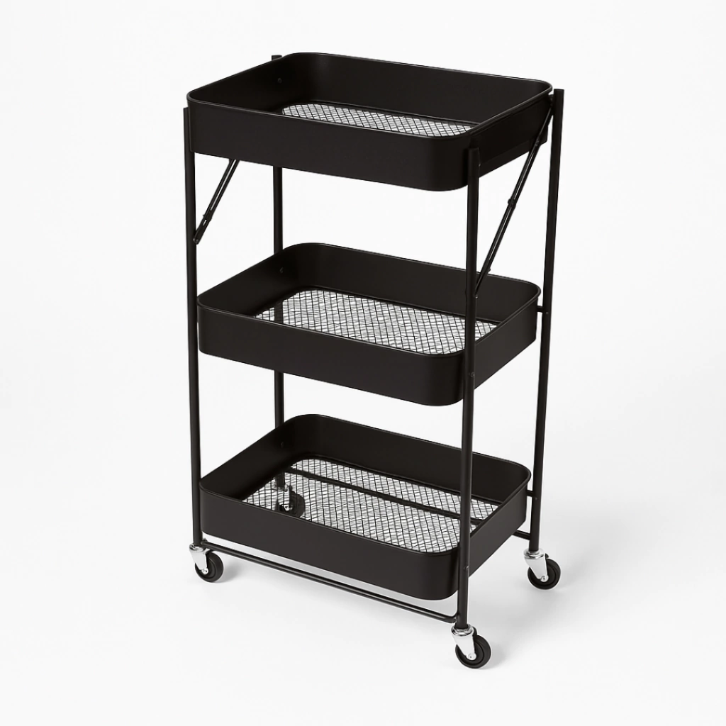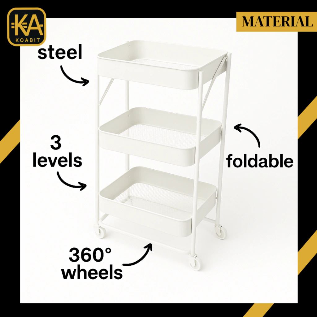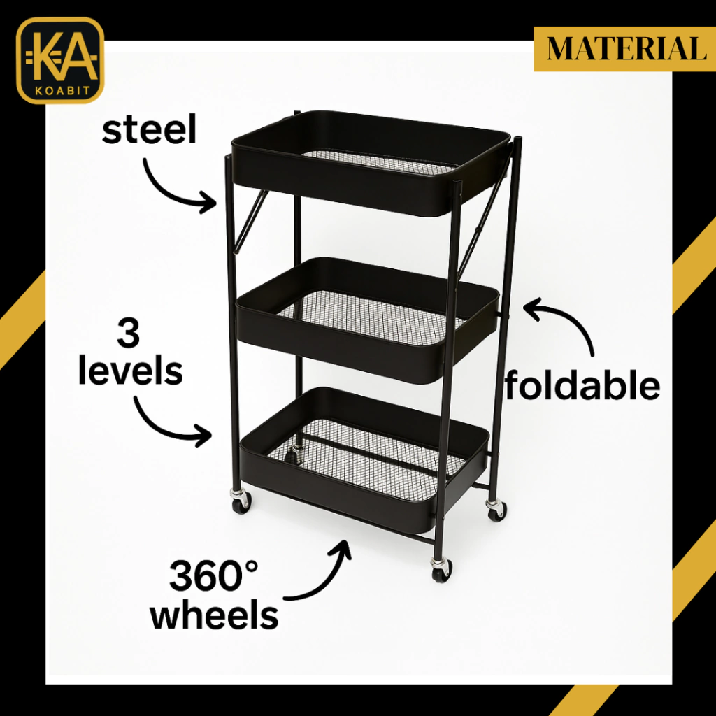 Organiza tu espacio de manera eficiente con el Carrito Organizador Plegable de 3 Niveles de KOABIT. Este carrito, diseñado con un elegante acabado en metal, ofrece una solución práctica para maximizar el almacenamiento en tu alacena, cocina o cualquier área de tu hogar. Con unas dimensiones de 76.5 cm de largo, 44 cm de ancho y 33 cm de profundidad, se adapta perfectamente a diferentes espacios, permitiendo un uso versátil.