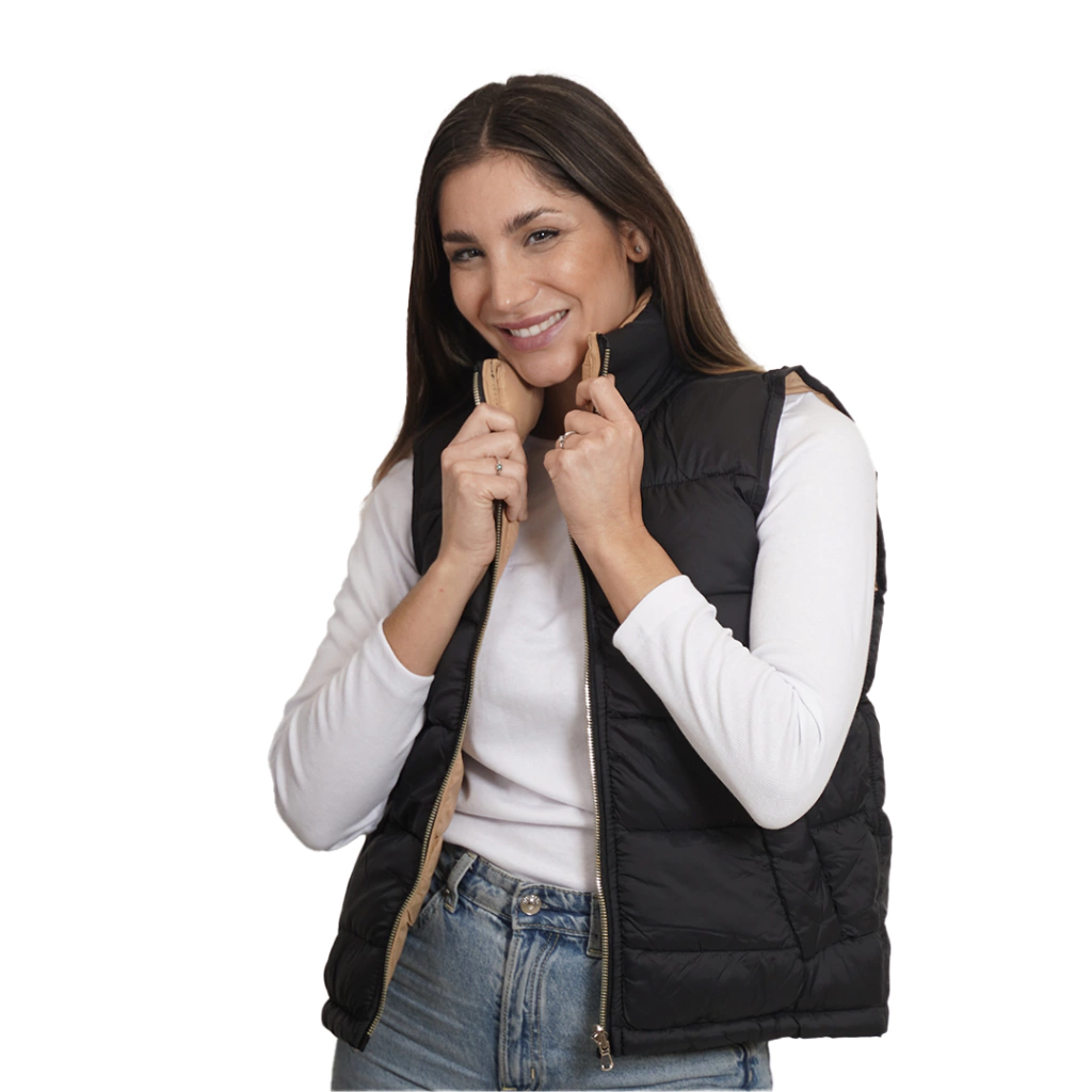 Este chaleco de abrigo para mujer es reversible, lo que te permite adaptar tu look según el clima y la ocasión.