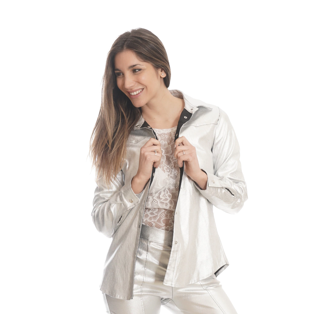 Conjunto Bengalina Metalizada Pantalon y Chaqueta