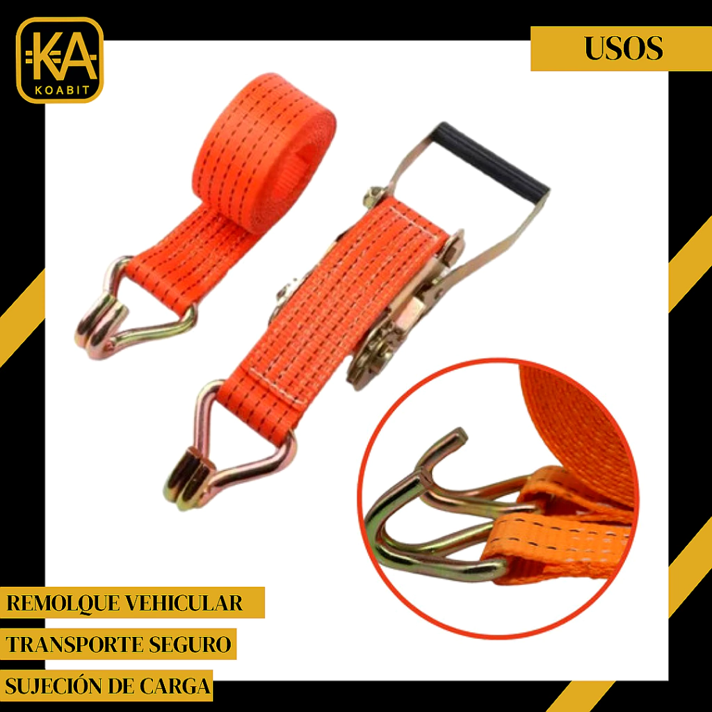 El Tensor Amarre Linga De Remolque de KOABIT es la solución ideal para asegurar tus cargas de manera eficiente y segura. Con un largo de 10 metros y un ancho de 5 cm, esta cincha con criquet está diseñada para soportar un peso máximo considerable, lo que la convierte en una herramienta esencial para cualquier situación de transporte.